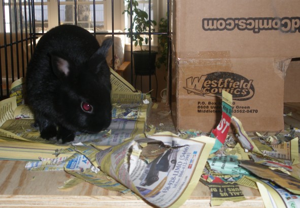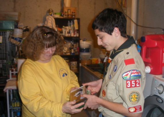 Alex presenting his Eagle Scout Leadership Service Project to Joy G. of the Missouri House Rabbit Society