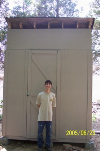 Jack, in front of his (finally!) completed Eagle Scout Project, a historically consistent tool storage shed for Quinette Cemetary