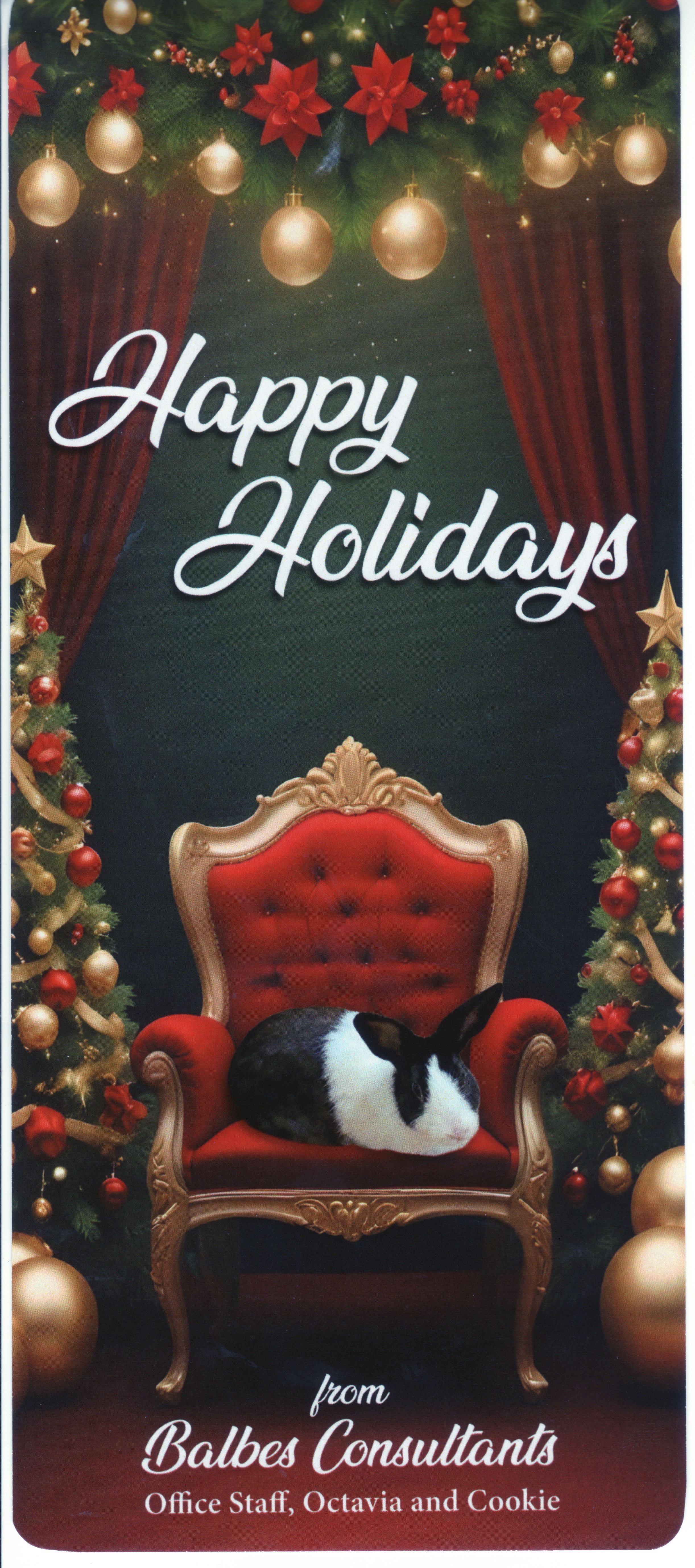 2001 Nov ? - 2013 Aug 25 Miles was a 4 lb. dutch rabbit who shared the office with Lisa for almost 11 years. His jobs included document destruction, posing for the annual holiday card and presentation slides, covering Lisa's hands in bunny spit, and comic relief. In December 2013, Octavia and Caesar came to live in the office, and took over paperwork destruction duties with gusto. Caesar has now passed on, but Cookie joined Octavia in June 2024 and is an expert at problem-solving. "Meet Miles the iBunny", Cult Of Mac (2008 October 08) "What's Up Doc?", Webster-Kirkwood Times (2007 Mar 30)